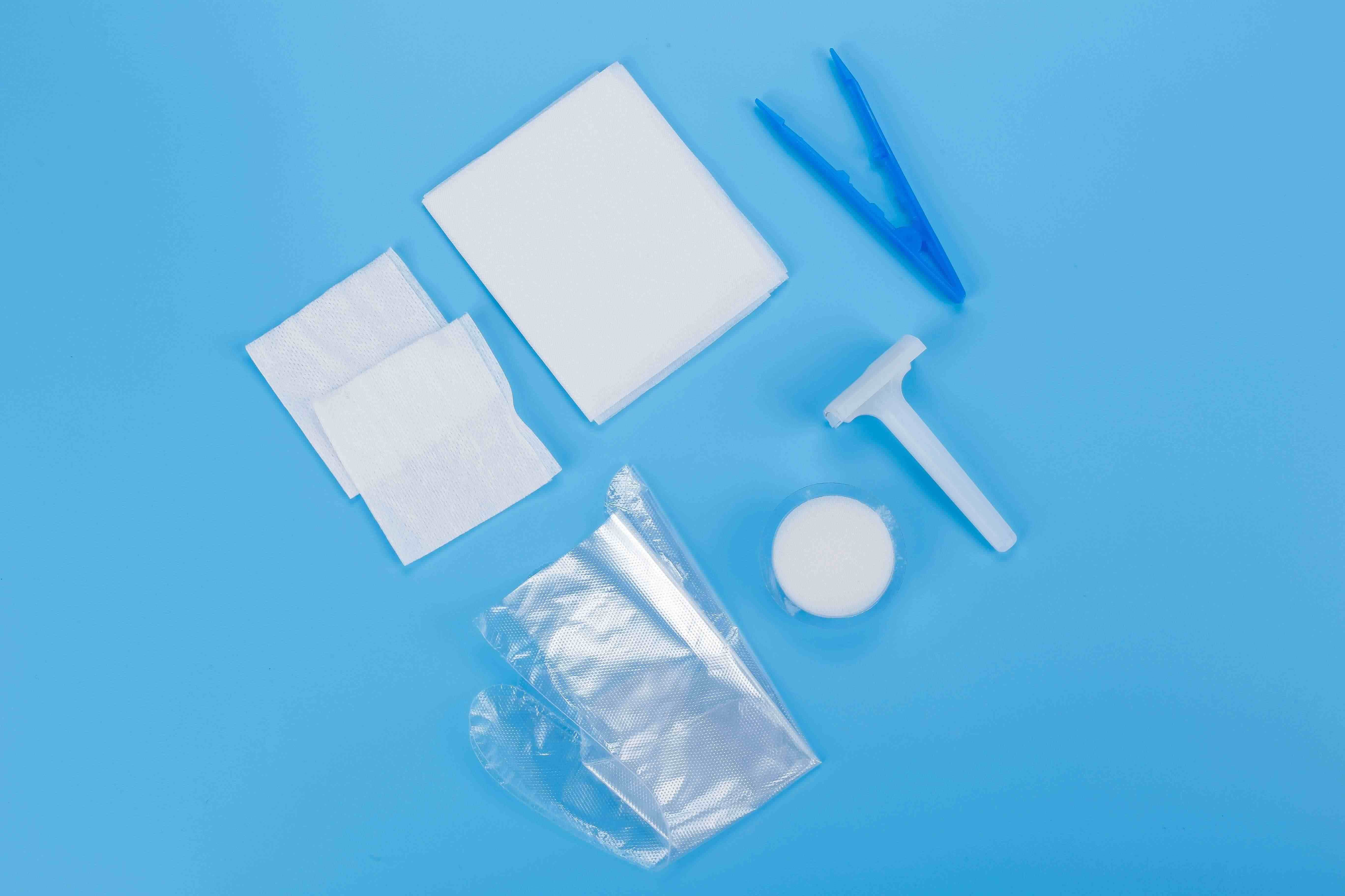 備品包的基本配置:備皮刀、軟皂液或滑石粉;選配;一次性使用醫(yī)用橡膠檢查手套、一次性使用薄膜手套、治療巾、消毒刷、棉球、一次性使用塑料鑷子、紙巾、輔料片、托盤。